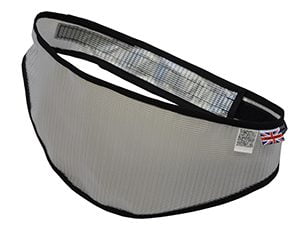 Ruth Lee's universelle tilsløringsmaske er konstrueret af uigennemsigtigt, flammehæmmende PVC (opfylder BS1763 Type 1B) med ramme af polypropylen-bånd og velcro-lukning.
