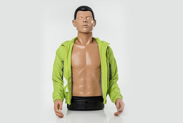 Dockan är mycket lämplig för träning i användning av en automatisk extern defibrillator (AED) och placering av elektroder till den.