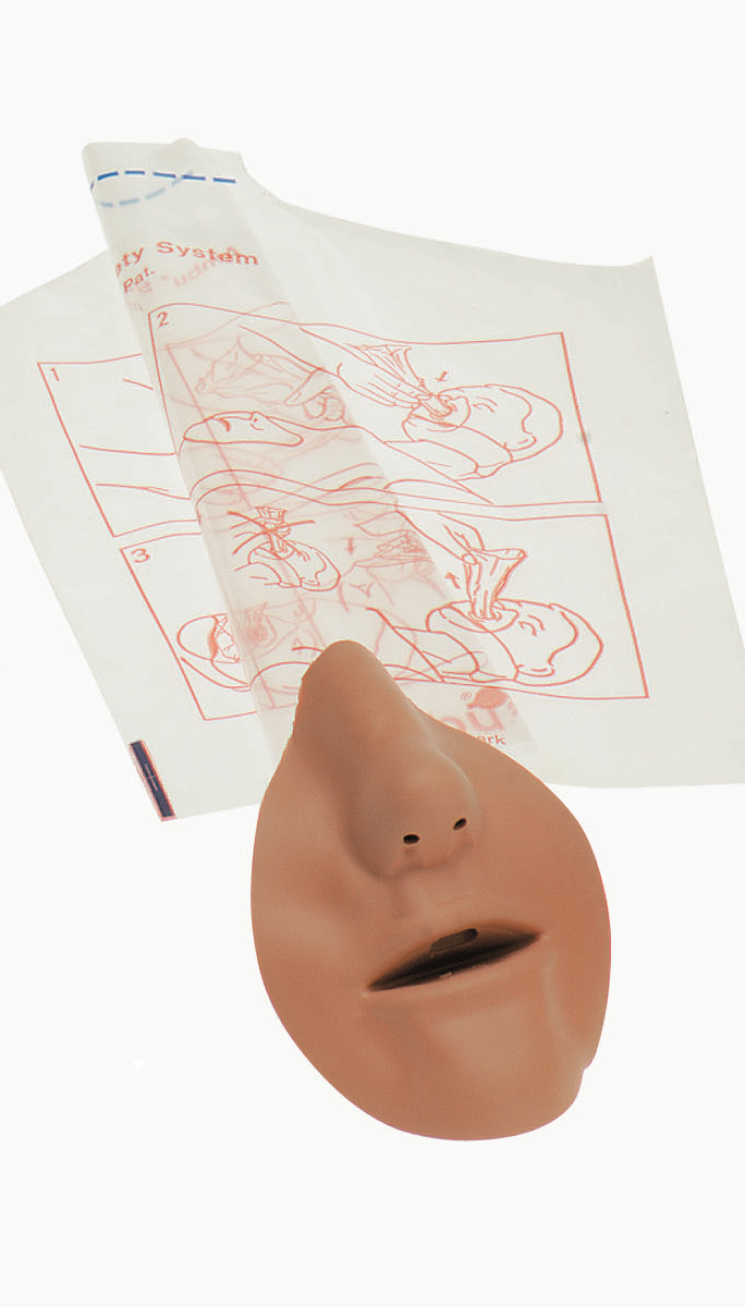 Huvudpåsen fungerar som en barriär mot kroppsvätskor som saliv etc. Den hindrar saker från att komma in i dockan när konstgjord andning utförs.